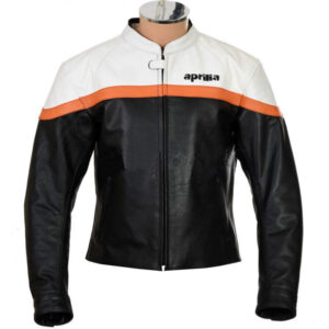 Aprilia Motorcycle black And White Racing Leather Jacket