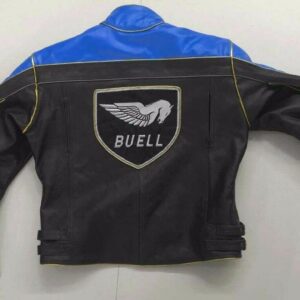 Buell Motorcycle Racing Blue And Black Leather Jacket