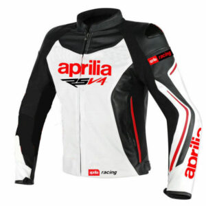 Custom White Aprilia Motorbike Racing Leather Jacket Ce Approved