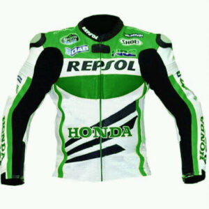 Honda Repsol Motorcycle White And Green Leather Jacket