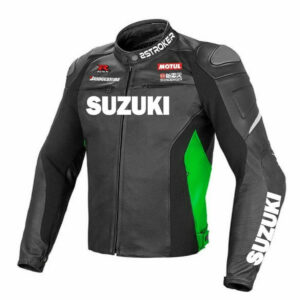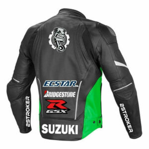 Suzuki GSXR Motorcycle Black And Green Leather Jacket