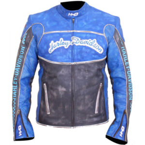 Harley Davidson Blue Motorcycle Leather Jacket