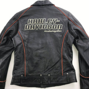 Harley Davidson Black and Orange Leather Jacket