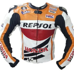 Black Red Honda Repsol Motorcycle Racing Leather Jacket