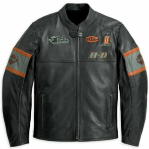 Harley Davidson Star Orange Black Racing Leather Jacket