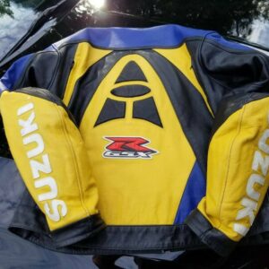 Suzuki GSXR Motorcycle Blue And Yellow Leather Jacket