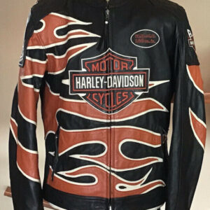 Harley Davidson Black Flame Leather Racing Jacket