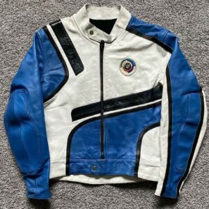 Vintage BMW Motorcycle Blue And White Leather Jacket