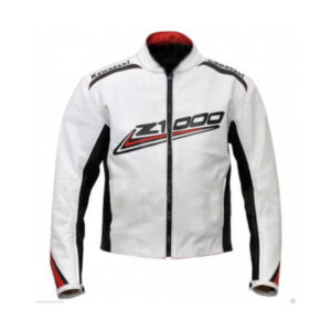 Kawasaki Z1000 White and Black Motorcycle Leather Jacket