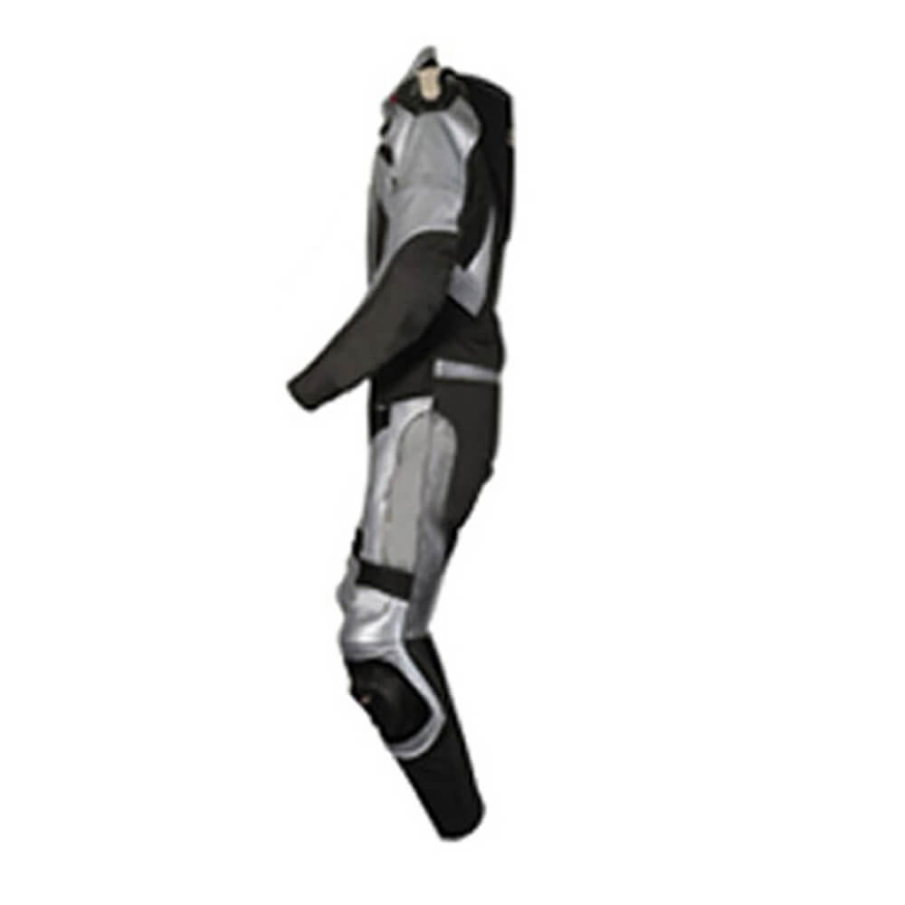 This Black and Silver Motorcycle Racing Leather Suit is specially designed for professional bikers to fulfill their riding passion on track with great safety. This suit features excellent design & comfort, 100% leather, CE approved Protectors.