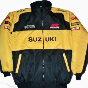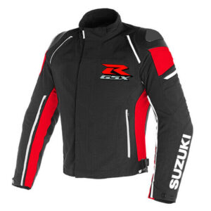 This “Black Blue Suzuki GSXR Motorcycle Racing Textile Jacket” is made from high-quality polyester material. It has an inner lined soft and comfortable Mesh polyester stitched that keeps you warm in the cold and chilly weather. It has a front YKK Branded Zipper style for its closure with a Snap collar that makes it a retro classic. The Jacket has a Black, Blue, and Gray color that makes it stand out. The Zipper with Snap cuffs also looks attractive. The Jacket has Two front Zipper pockets. Suzuki Motorcycle Logo on the Front looks very beautiful. The jacket is durable to wear due to its fine quality stitching.