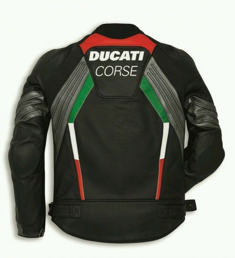 Black Ducati Corse Motorbike Racing Leather Jacket Ce Approved