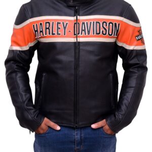 The Black Harley Flaming Patch on Back Leather Jacket is made from top-quality leather. The jacket is available in classic black color with Harley Flaming Patch on the Back that makes it stand out. The Black Leather Jacket has a shirt-style collar. For closure, the jacket has a branded YKK zipper closure. The inner of the Leather Jacket consists of a soft viscose lining for warmth and comfort. To keep stuff the Leather Jacket has two side waist pockets for keeping stuff. The jacket is durable to wear due to its fine quality stitching. What are you waiting for? Grab this appealing piece and step towards the world of fashion.