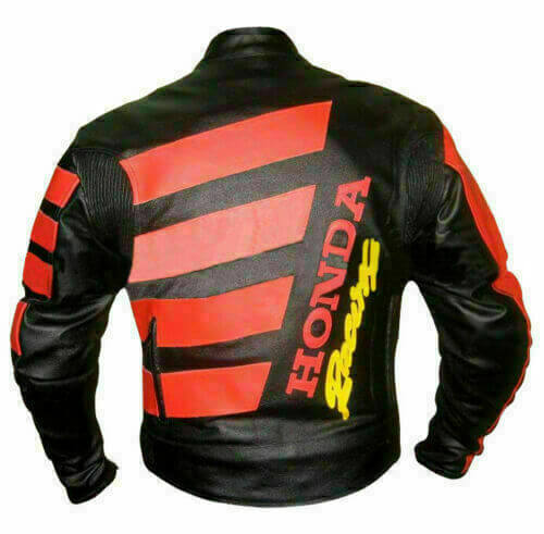 “Black Red Honda Motorcycle Leather Jacket” For Biker is especially design and stitch for bike riders. This is a perfect design motorcycle Safety Biker Jacket. It is not only designed awesome but also equipped with top-quality safety.