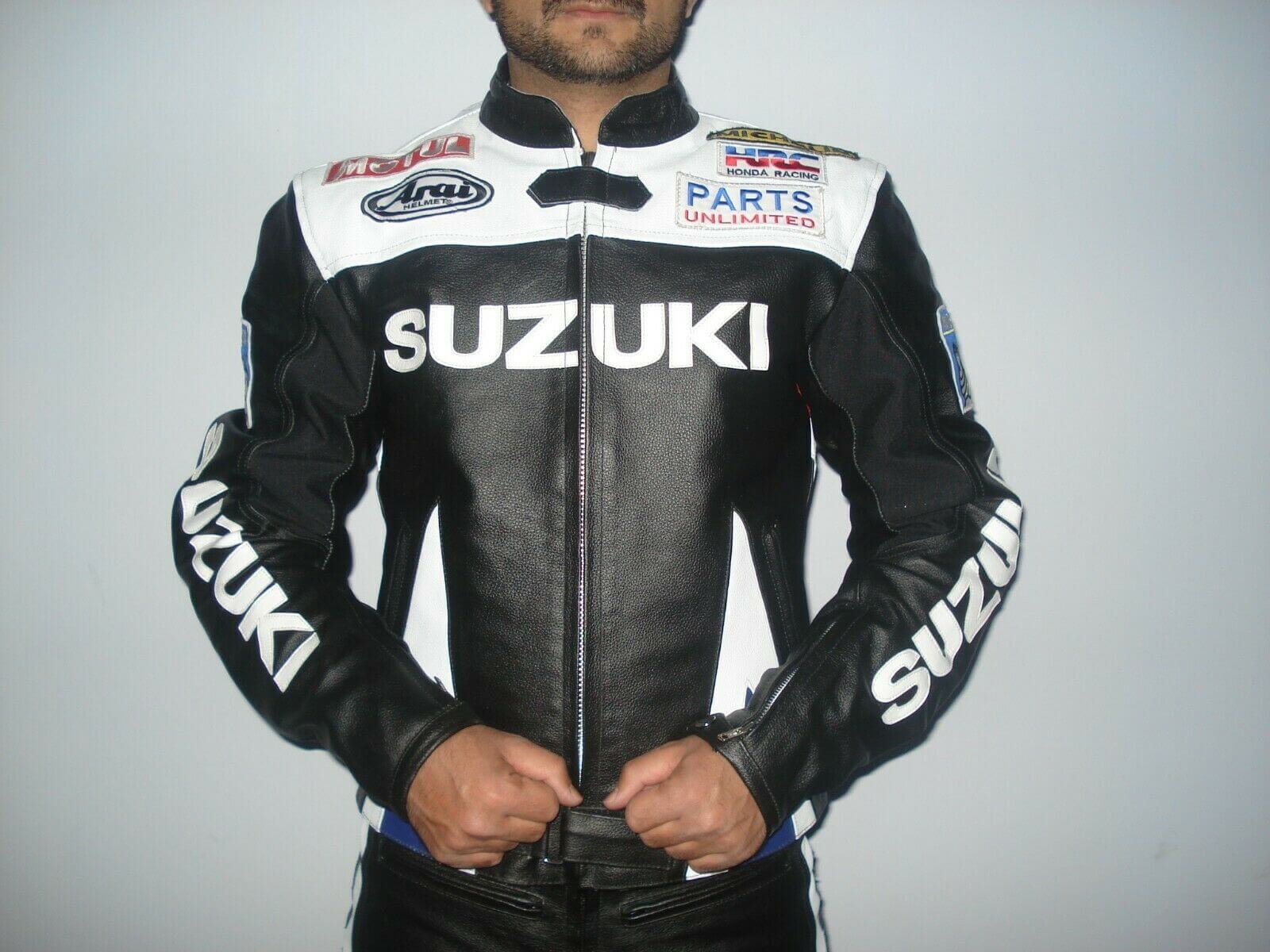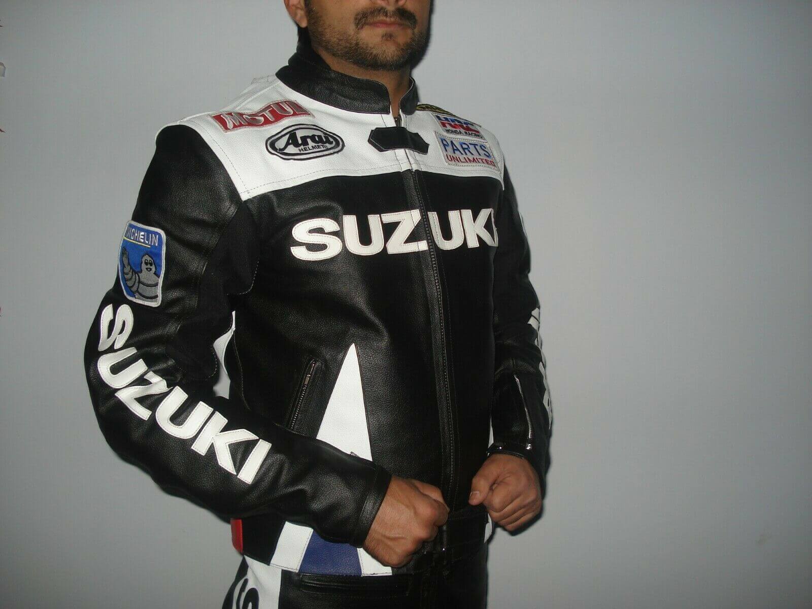 Black Suzuki Motorcycle Leather Racing Jacket