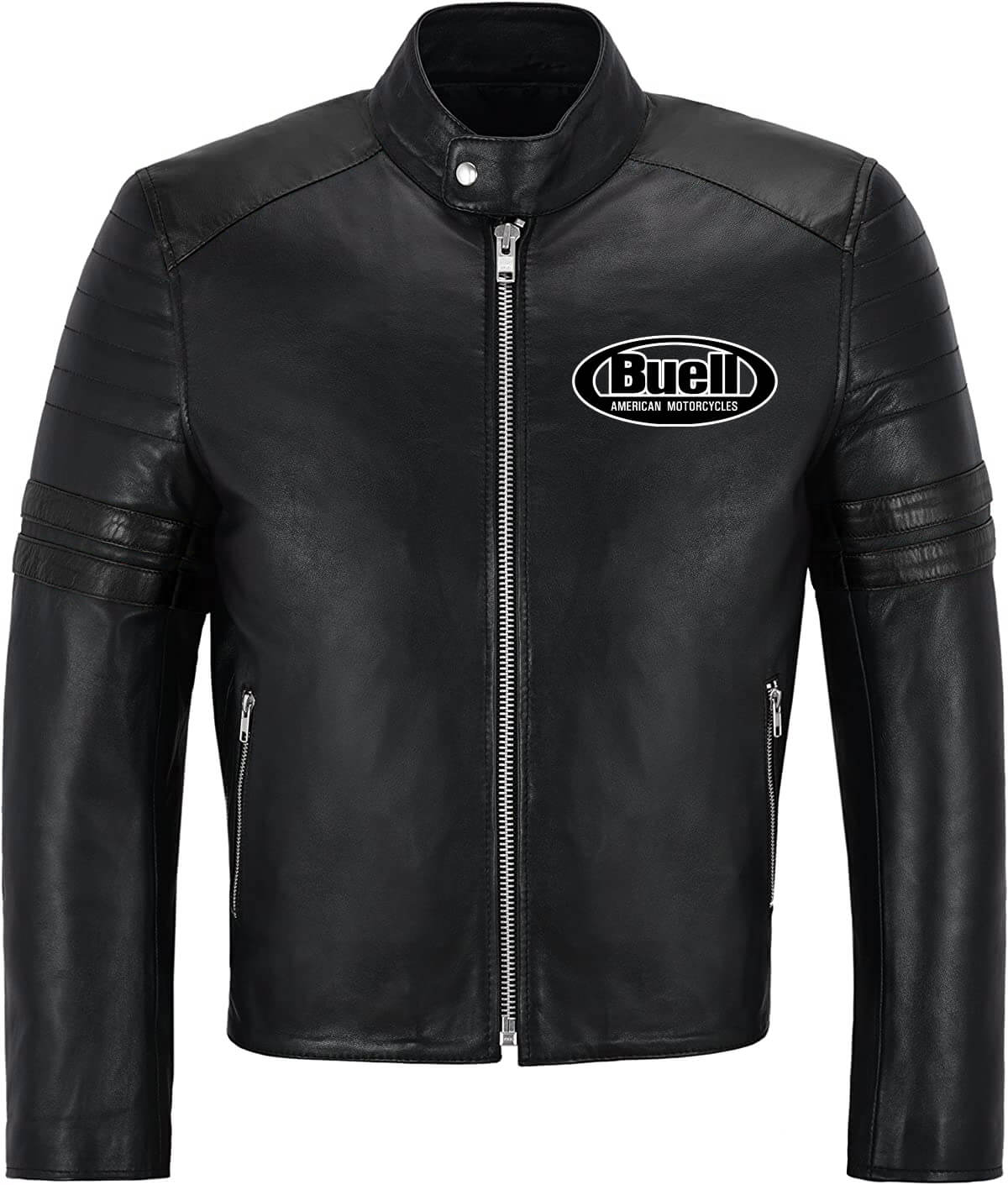 This “Buell Motorcycle Racing Leather Black Jacket” is made from high-quality leather material. It has an inner lined soft and comfortable Viscose stitched that keeps you warm in the cold and chilly weather. It has a YKK Branded Zipper Style for its closure with a Snap Style collar that makes it a retro classic. The Jacket has a Black color that makes it stand out. The Zipper cuffs and Straight Line hemline also look attractive. The Jacket has Two Side Zipper pockets. Buell Motorcycle Logo on the left chest and on the back looks very beautiful. The Jacket is durable to wear due to its fine-quality stitching.