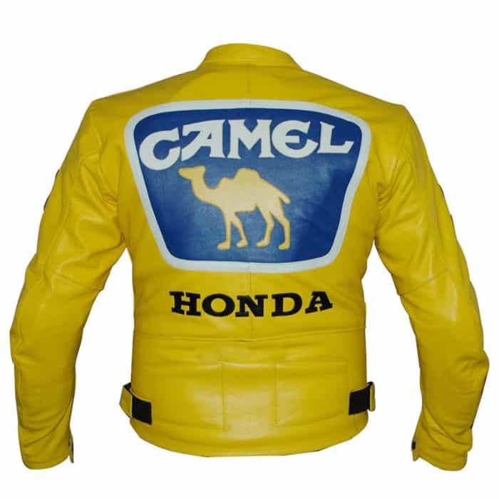 Custom Men’s Yellow Honda Camel Racing Motorcycle Leather Jacket