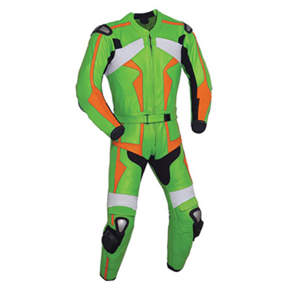 Green and Orange Motorcycle Racing Leather Suit