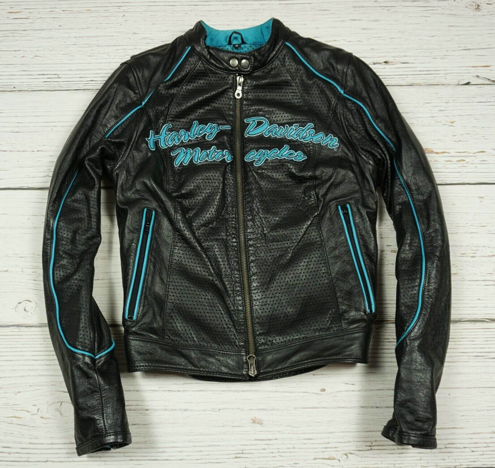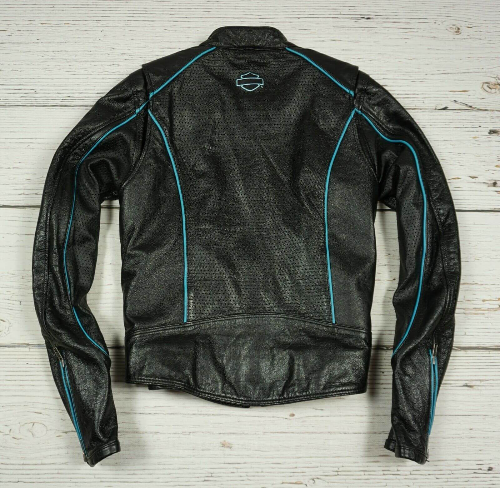 Harley Davidson Black Blue Motorcycle Leather Jacket