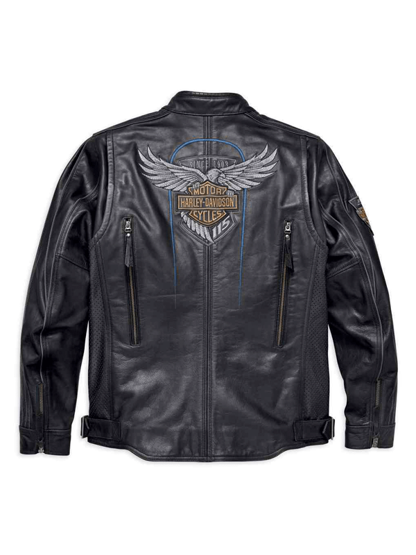 This Harley Davidson Harley Davidson Black Motorcycle Eagle Leather Jacket is made from leather material. It has an inner lined soft and comfortable viscose stitched that keeps you warm in the cold and chilly weather. Harley Davidson Black Motorcycle Eagle Leather Jacket a front YKK branded zipper for its closure. It has a Harley Davidson patch on the front, and back. The jacket has black in color. It comes with long-length sleeves with zipper cuffs. There are two front zipper pockets where you can secure stuff. The Jacket has Four Zipper Closure Pockets to keep the stuff.