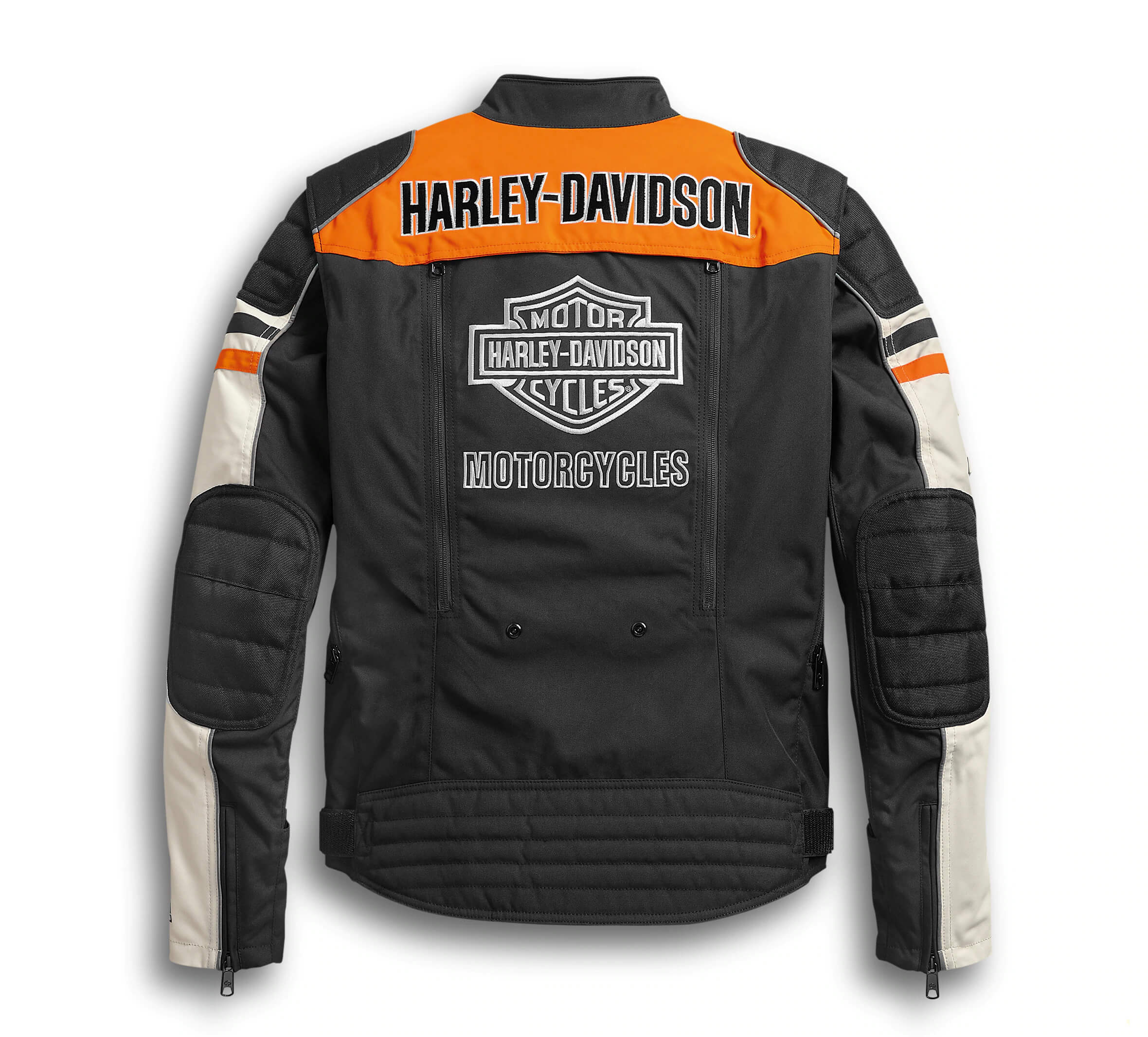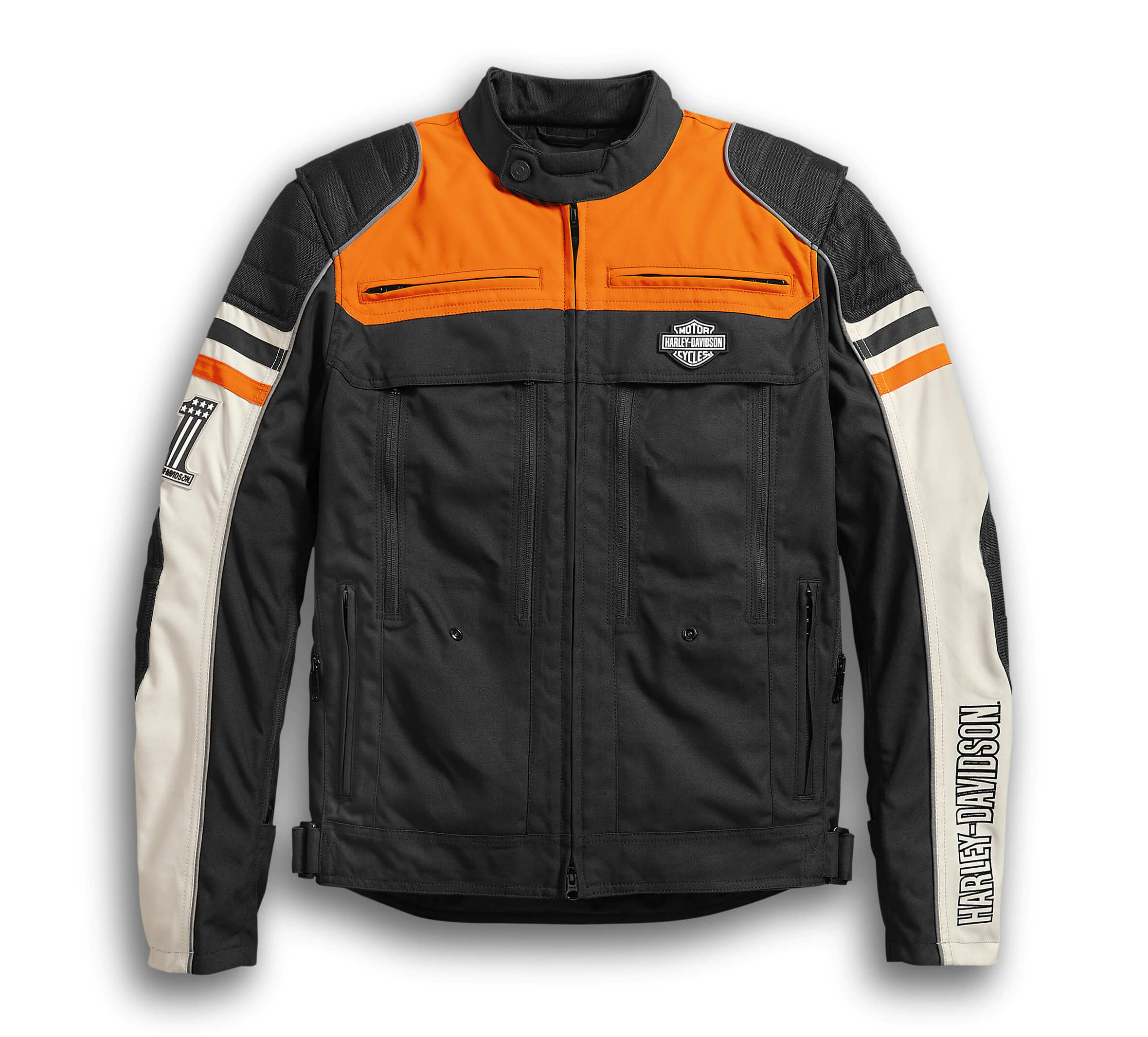 You can revamp the wardrobe with this Harley Davidson Color Block Riding Jacket. This is sophisticatedly designed with Polyester and inner viscose lining to make it more comfortable to wear.