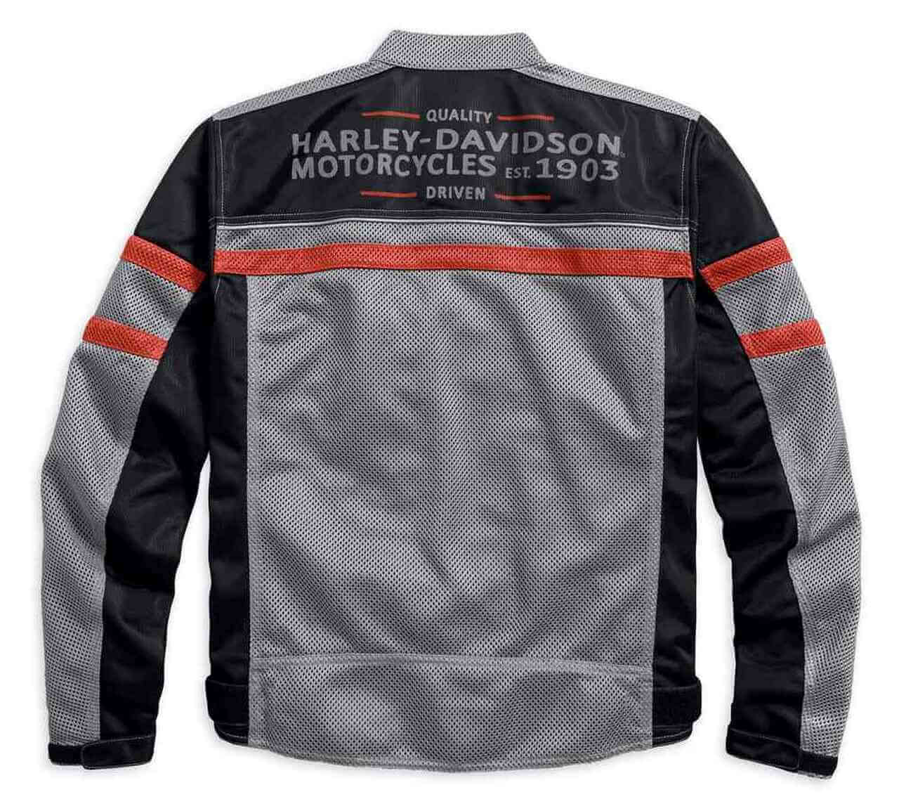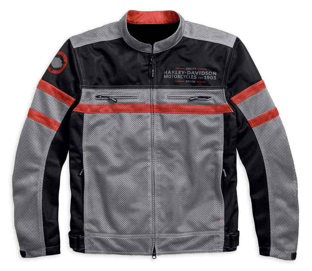 This Harley Davidson Diffusion Color blocked Mesh Jacket is specially designed for professional bikers to fulfill their riding passion on track with great safety. This Jacket made with Polyester Mesh with inner viscose lining inside that will keep you comfortable and at ease throughout the day. Body armor pockets at elbows and shoulders All these factors add the intended safety feature to the jackets to maintain the multi-dimensional protection of the professional bikers on the track. It has a front zipper closure and two front pockets. The Sleeves of the jacket are Slightly pre-curved and adjustable waist tabs. It has Printed graphics on the right sleeve, left chest, and back yoke.