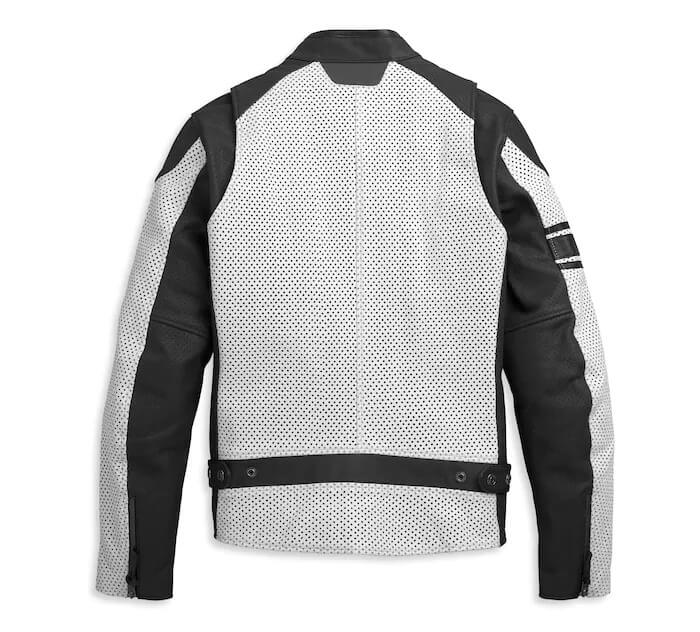 This Harley Davidson Hideaway Perforated Leather Jacket is made from high-quality leather material. It has an inner lined soft and comfortable viscose stitched that keeps you warm in the cold and chilly weather. The Jacket has a front Two Way YKK branded zipper for its closure with Snap Collar that makes it a retro classic. The jacket has a black and white color that makes it stand out. The Zipper cuffs also look attractive. The Jacket has Two zipper waist pockets to keep the stuff secure. The Harley Davidson logo at the front looks beautiful. The jacket is durable to wear due to its fine quality stitching.