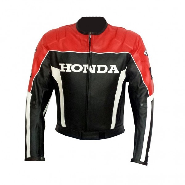 Honda Black And Red Racing Motorcycle Leather Jacket With Safety Pads
