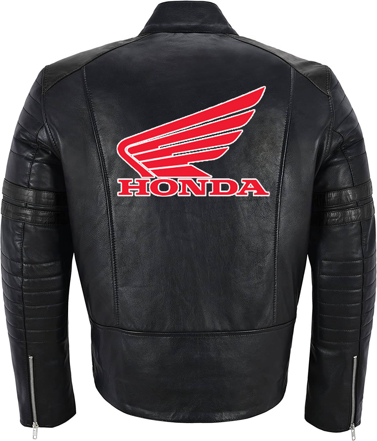 This “Honda Motorcycle Racing Leather Black Jacket” is made from high-quality leather material. It has an inner lined soft and comfortable Viscose stitched that keeps you warm in the cold and chilly weather. It has a YKK Branded Zipper Style for its closure with a Snap Style collar that makes it a retro classic. The Jacket has a Black color that makes it stand out. The Zipper cuffs and Straight Line hemline also looks attractive. The Jacket has Two Side Zipper pockets. Honda Motorcycle Logo on the left chest and on the back looks very beautiful. The Jacket is durable to wear due to its fine-quality stitching.