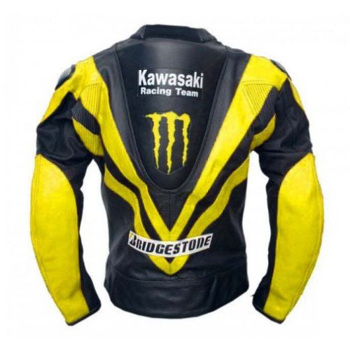 Kawasaki Biker Black And Yellow Leather Jacket