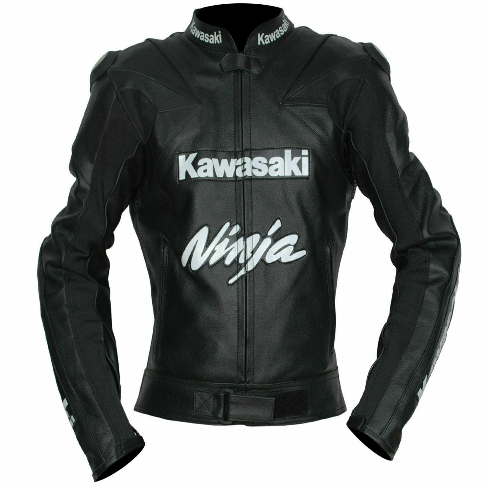 Kawasaki Black Racing Motorcycle Leather Jacket Ce Approved