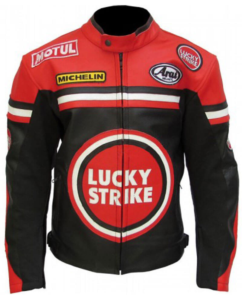 Lucky Strike Black and Red Motorcycle Leather Jacket