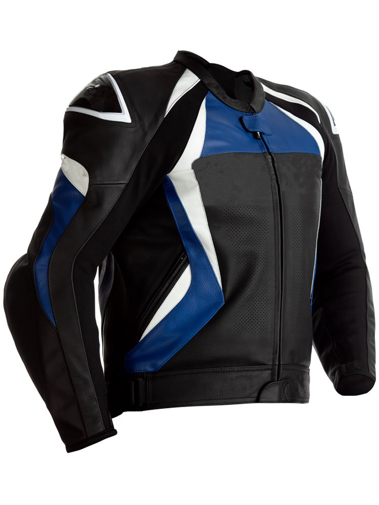 Motorcycle black And blue And White Leather jacket