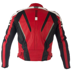 Motorcycle Real Leather Red And White Safety Pads Jacket