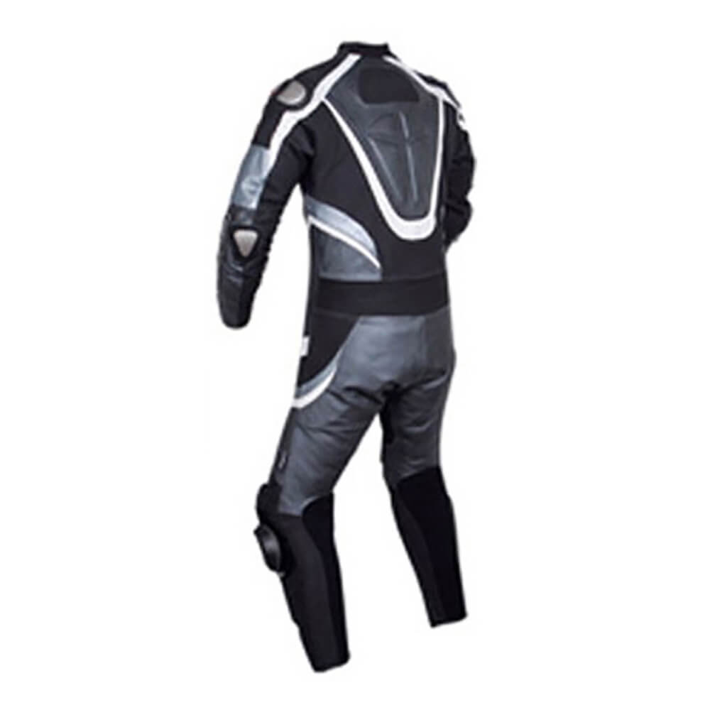 This Motorcycle Silver and Black Racing Leather Suit is specially designed for professional bikers to fulfill their riding passion on track with great safety. This suit features excellent design & comfort, 100% leather, CE approved Protectors.