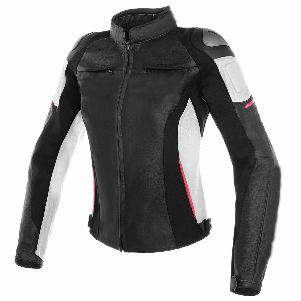 Racing Motorcycle Leather Black / White / Fuchsia Jacket