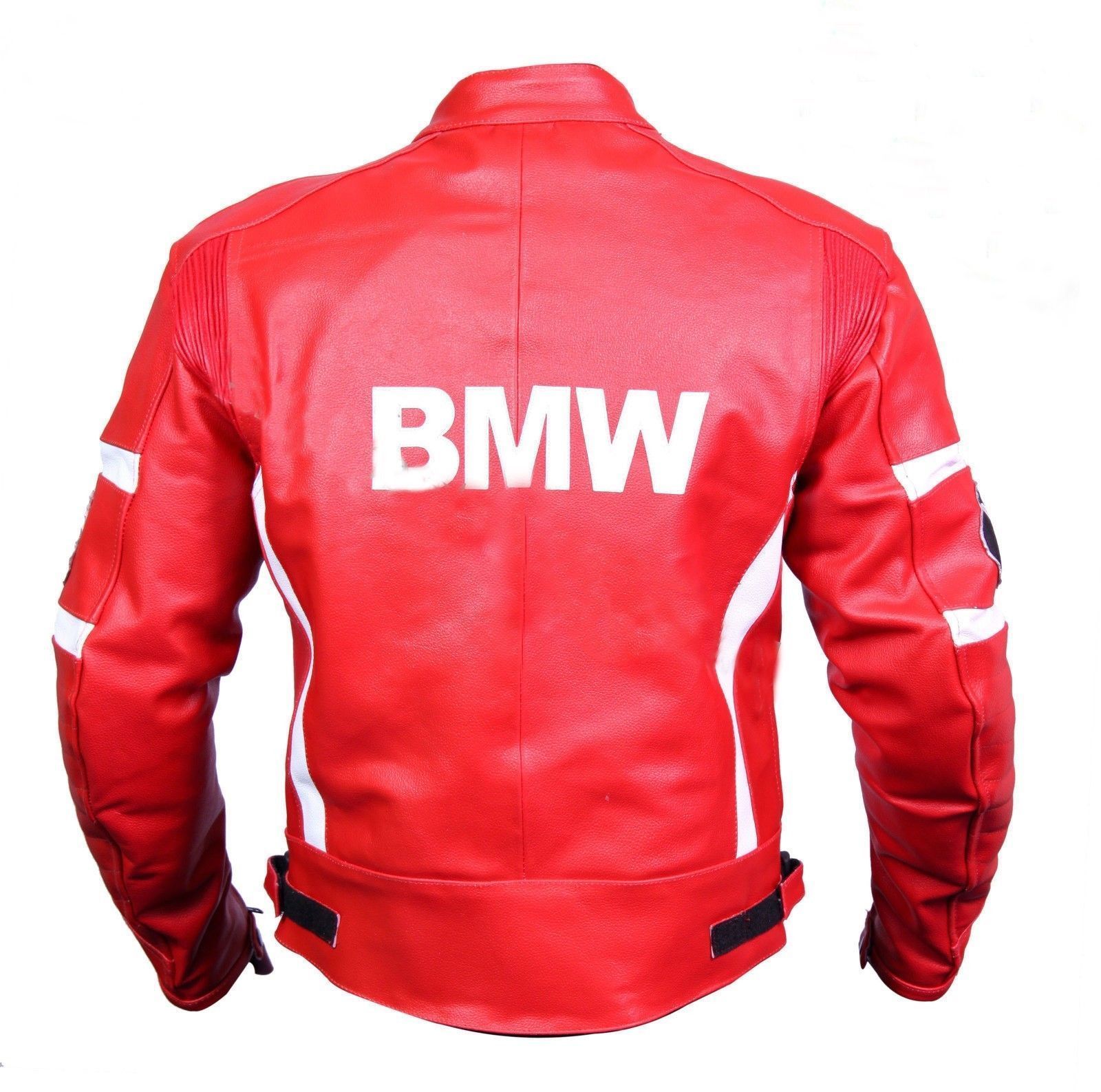 RED BMW RACER MOTORBIKE LEATHER JACKET CE APPROVED WITH SAFETY PADS