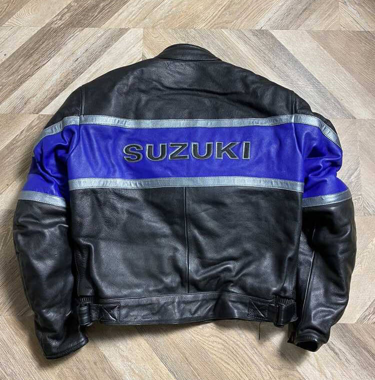 Suzuki Motorcycle Black And Navy Blue Leather Jacket