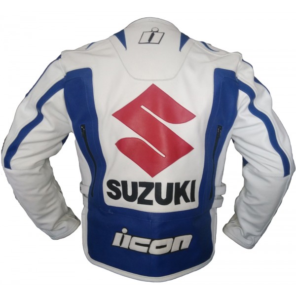 Suzuki Motorcycle blue and white Leather Jacket
