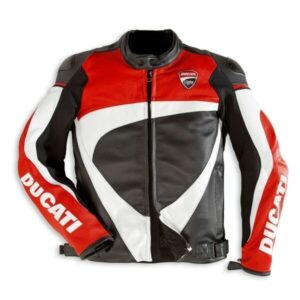 Suzuki red and white GSXR Motorcycle Leather Jackets CE Approved pads
