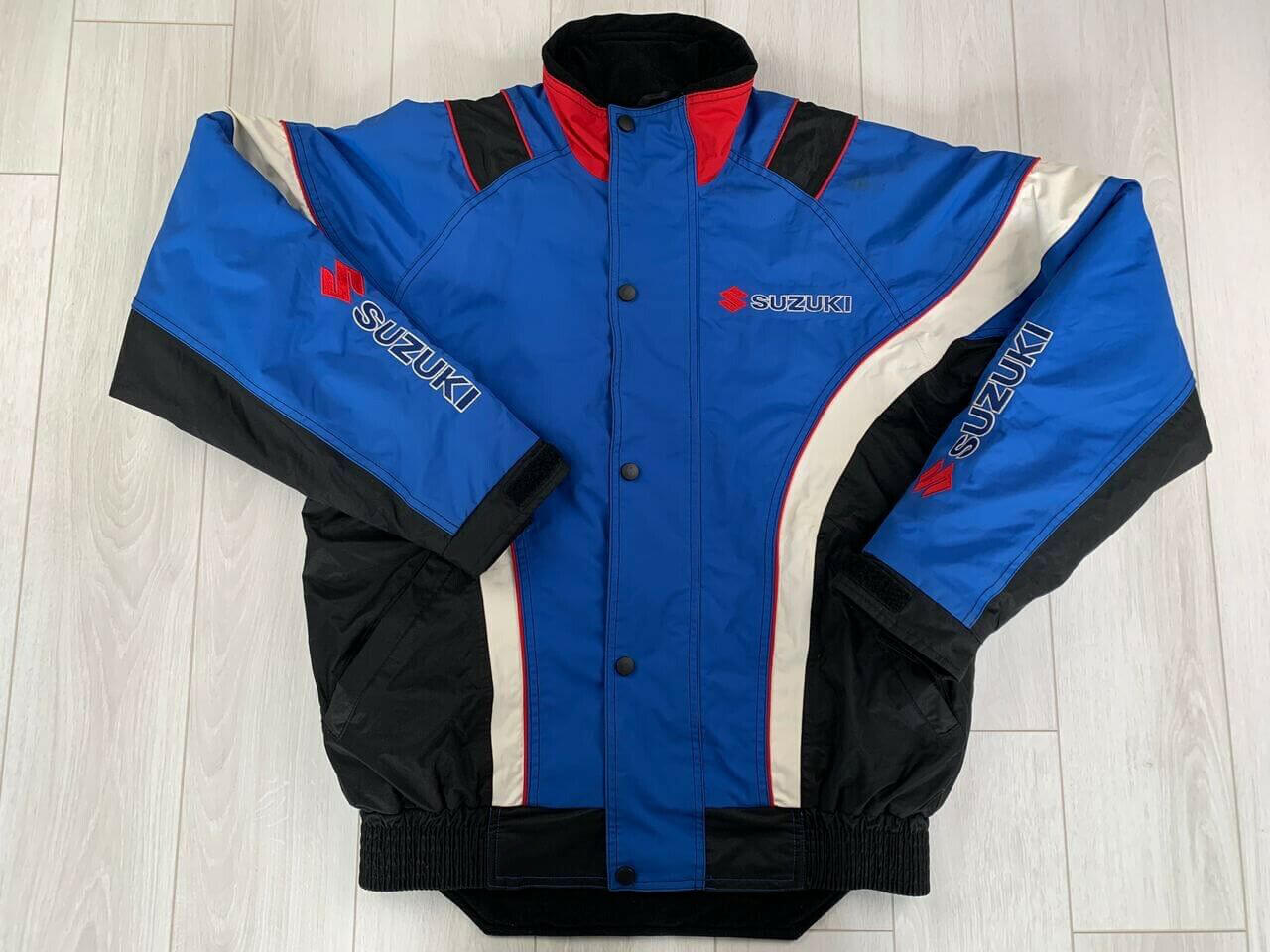 - Suzuki Motorcycle Logo on the left chest and on the sleeves.