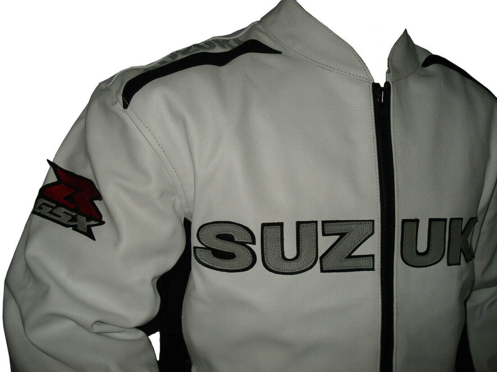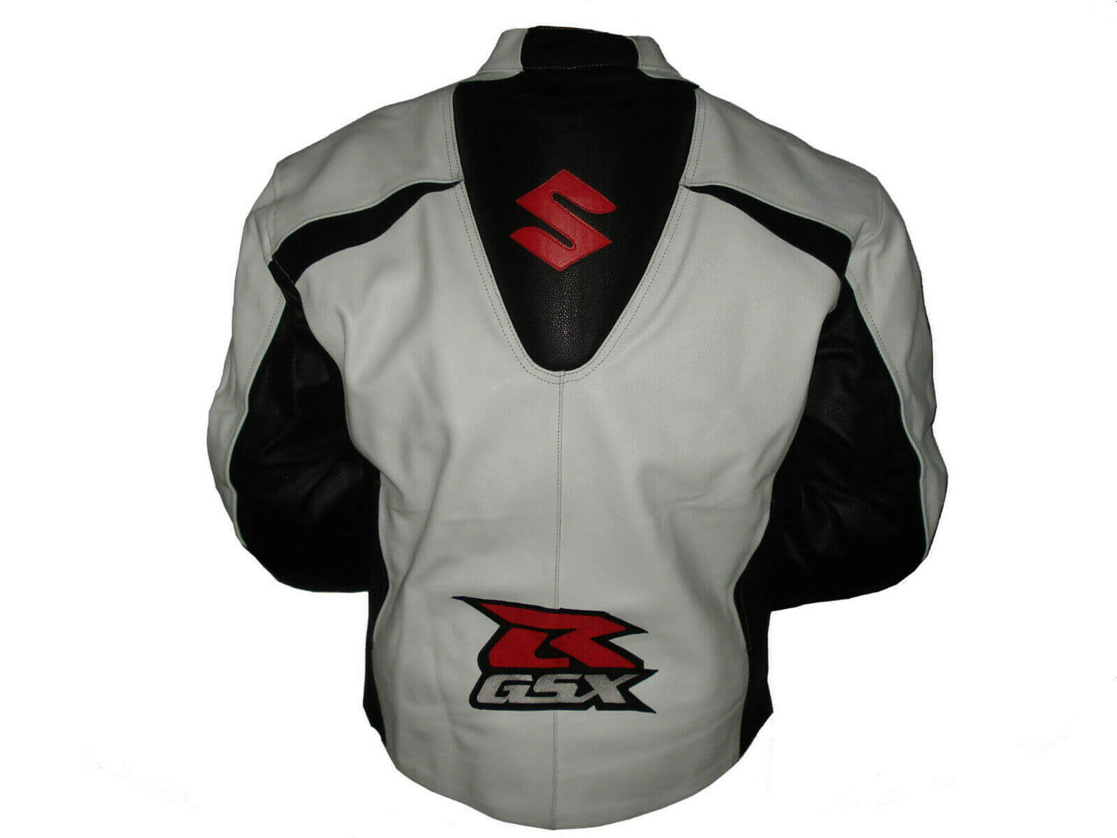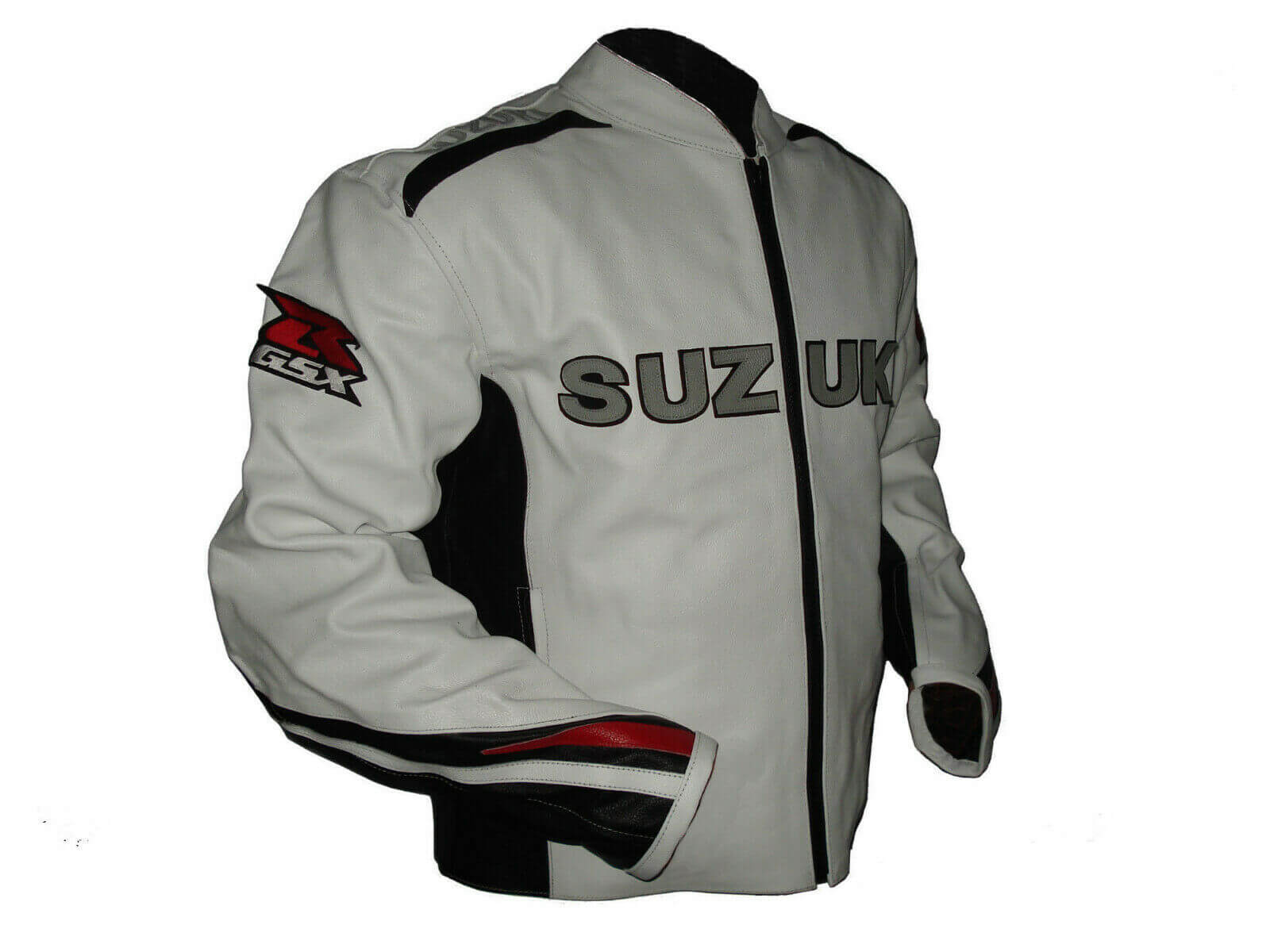 Suzuki White Leather Black Red Stripe Motorcycle Jacket