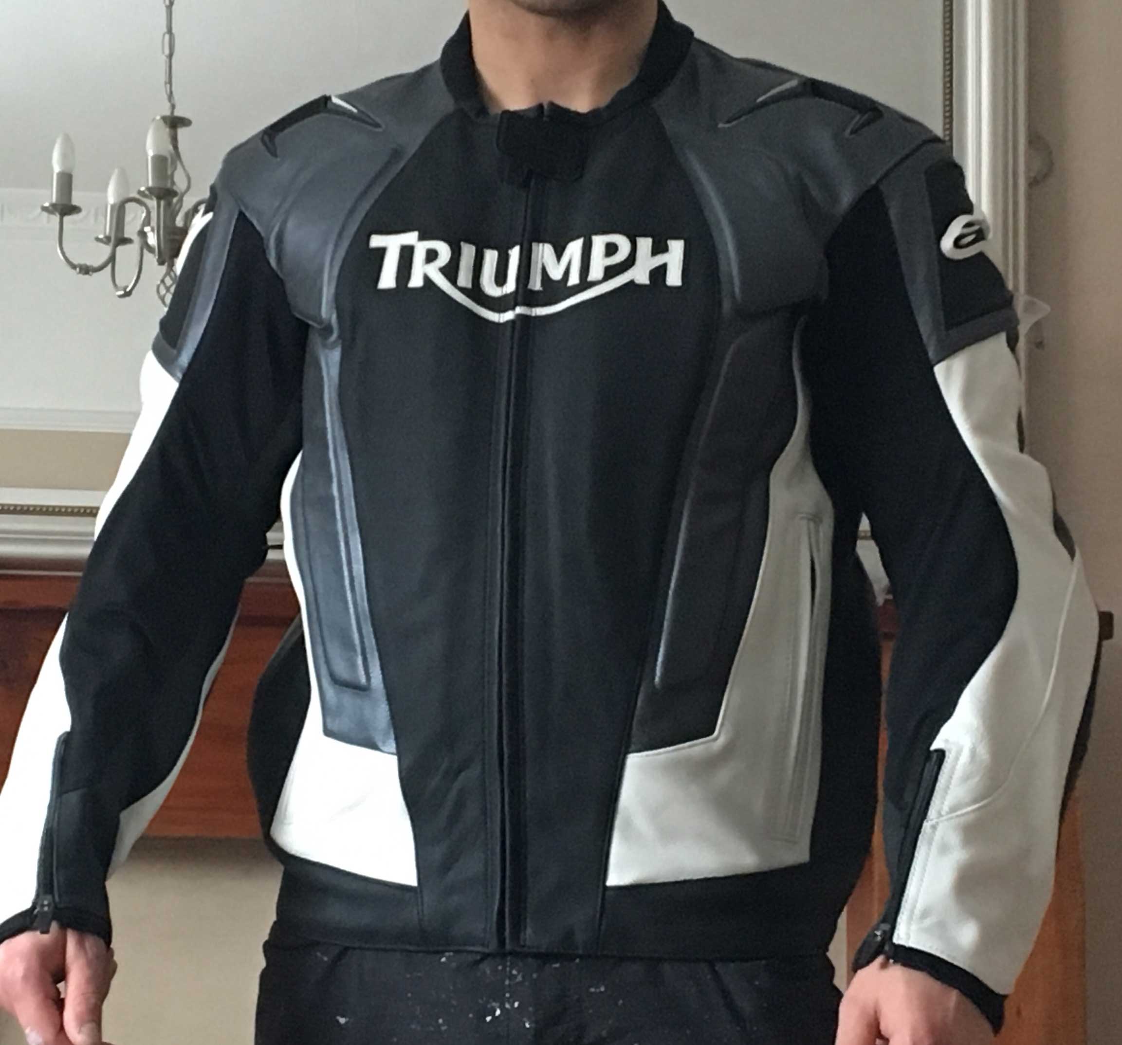 “Triumph Motorcycle Black And Gray Racing Leather Jacket” For Biker are specially designed and stitched for bike riders. This is a perfect design motorcycle Safety Biker Jacket. It is not only designed awesome but also equipped with top-quality safety.