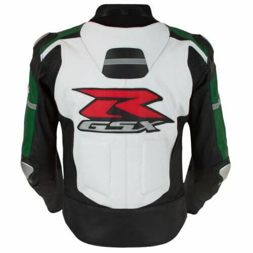 White Green Suzuki Motorcycle Leather Jacket. Crafted from premium leather, this jacket promises both style and durability. The mesh polyester inner lining ensures maximum breathability and comfort during those high-octane rides.