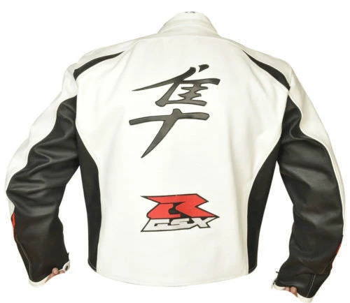White Suzuki Hayabusa Motorcycle Leather Racing Jacket