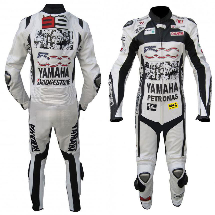 YAMAHA Branded Motorcycle Two Tone Black White Leather Suit
