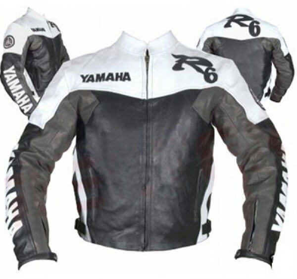 Yamaha R6 Black and White Motorcycle Leather Jacket