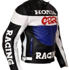 Custom Honda Cbr Black Blue Motorcycle Leather Jacket With Safety Pads